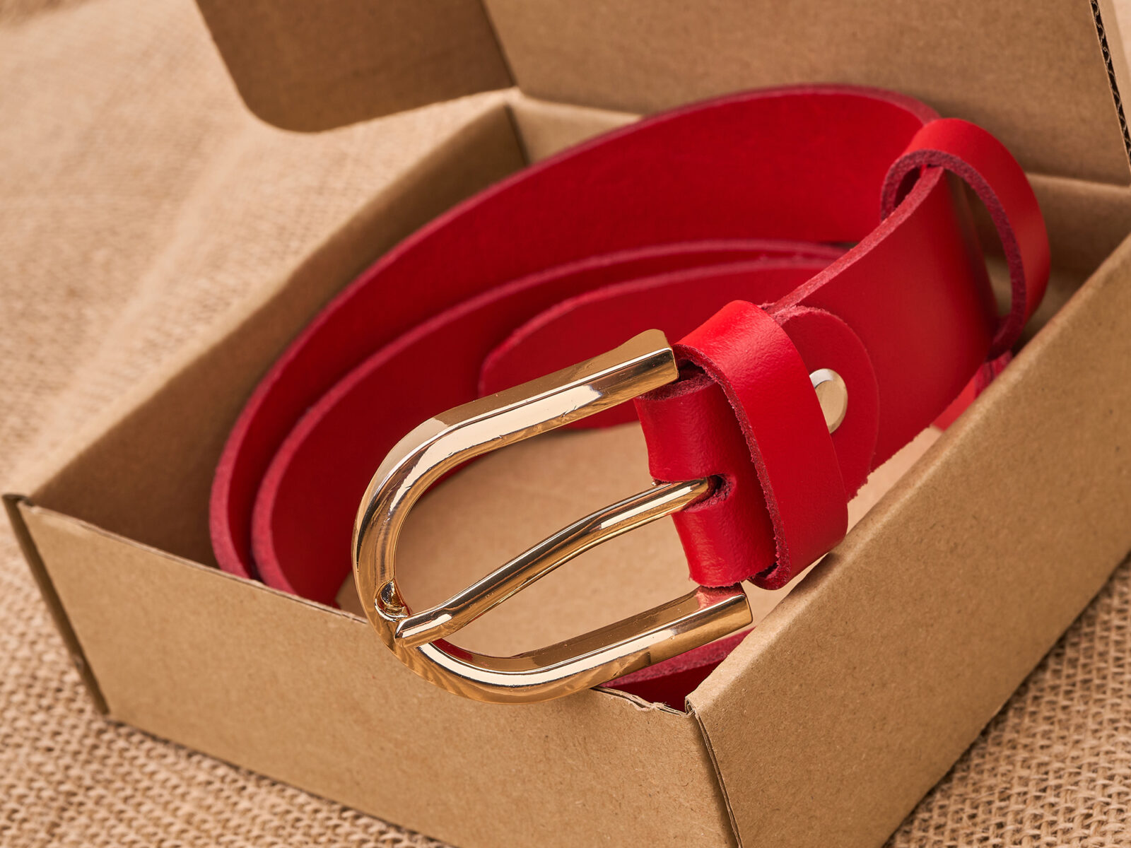 Pasek damski do spodni skórzany czerwony ze złotą klamrą 100 cm Paolo Peruzzi