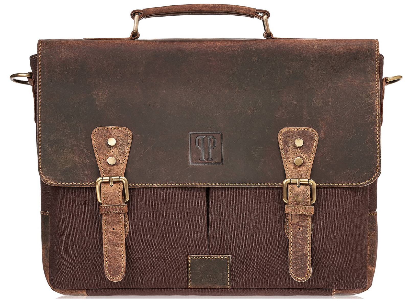Duża, brązowa teczka męska z canvasu i grubej skóry naturalnej Paolo Peruzzi