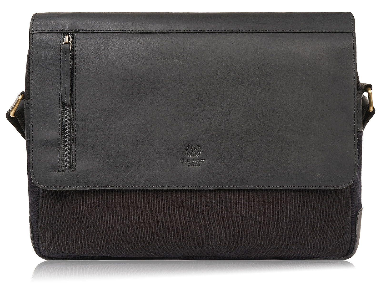 Duża torba męska na ramię z klapą ze skóry naturalnej czarna Paolo Peruzzi