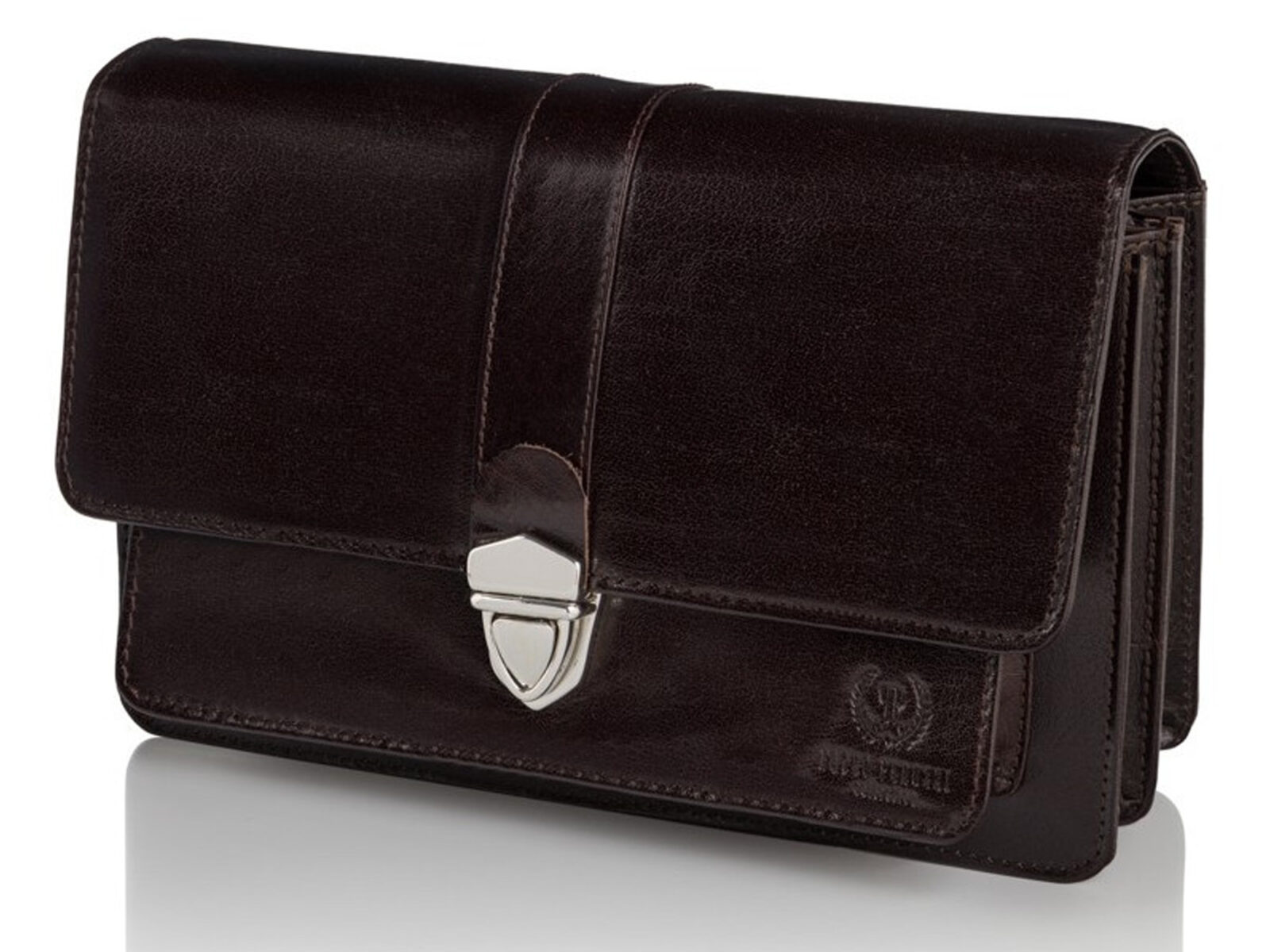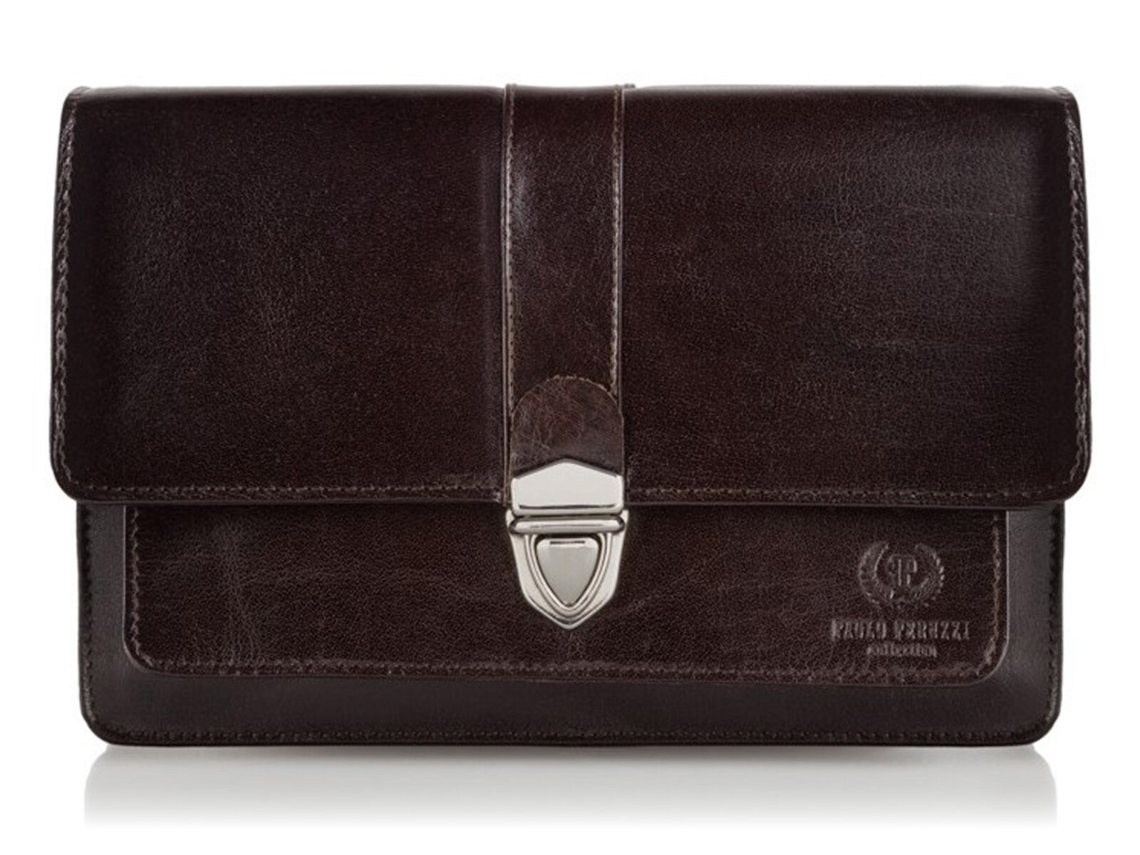 Elegancka i pojemna skórzana saszetka męska na dokumenty ciemnobrązowa Paolo Peruzzi