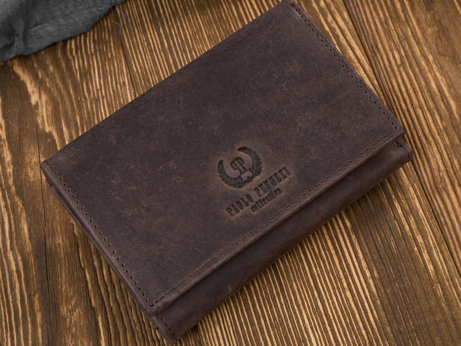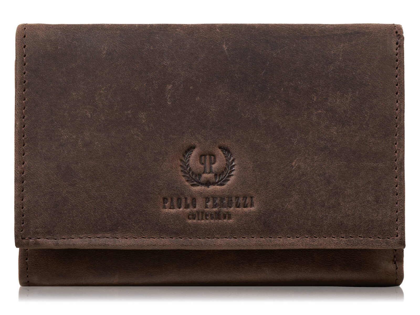 Ciemnobrązowy średniej wielkości skórzany portfel damski w stylu vintage Paolo Peruzzi