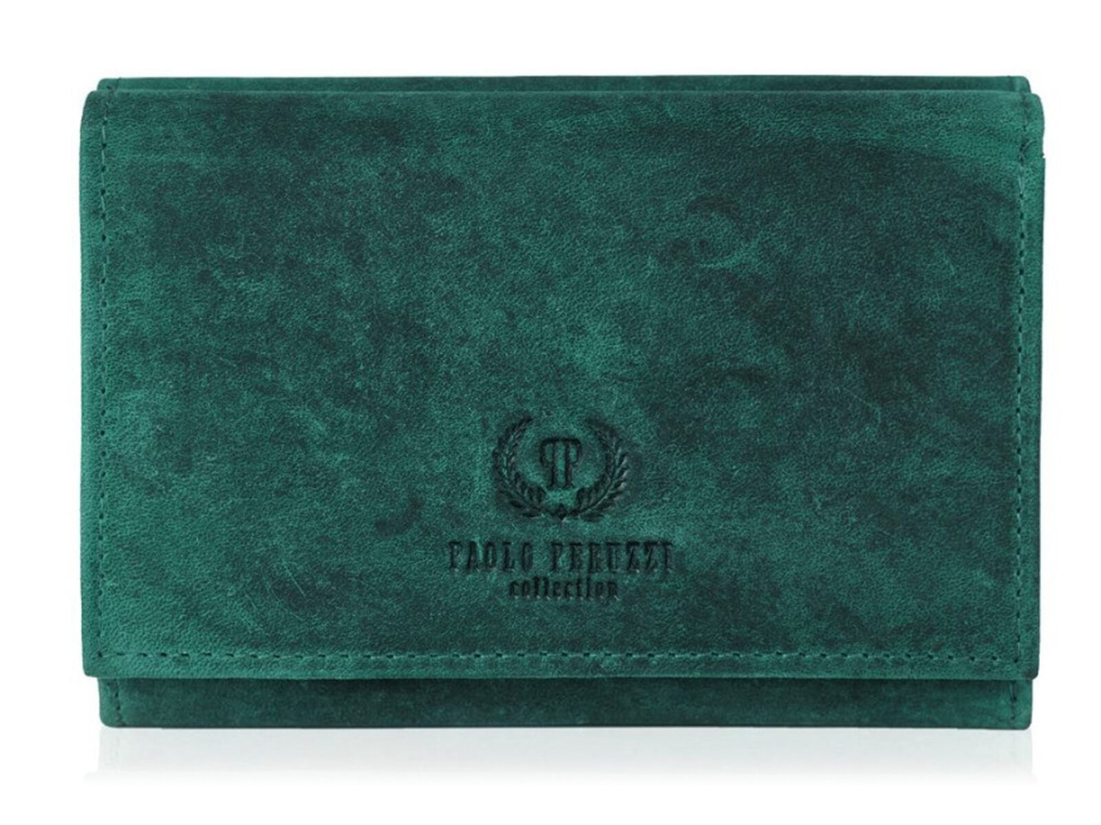 Zielony średniej wielkości skórzany portfel damski w stylu vintage Paolo Peruzzi