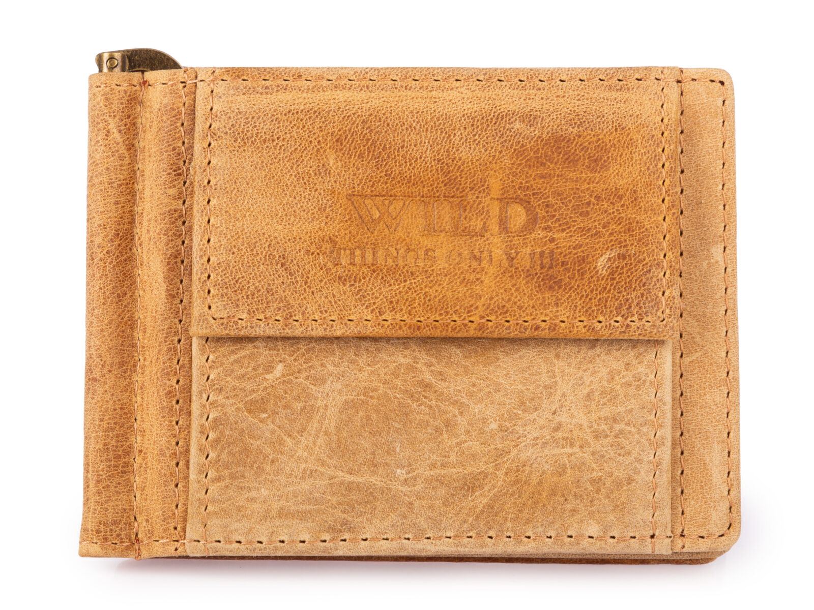 Męski portfel skórzany z klipsem na banknoty ciemny brąz WILD