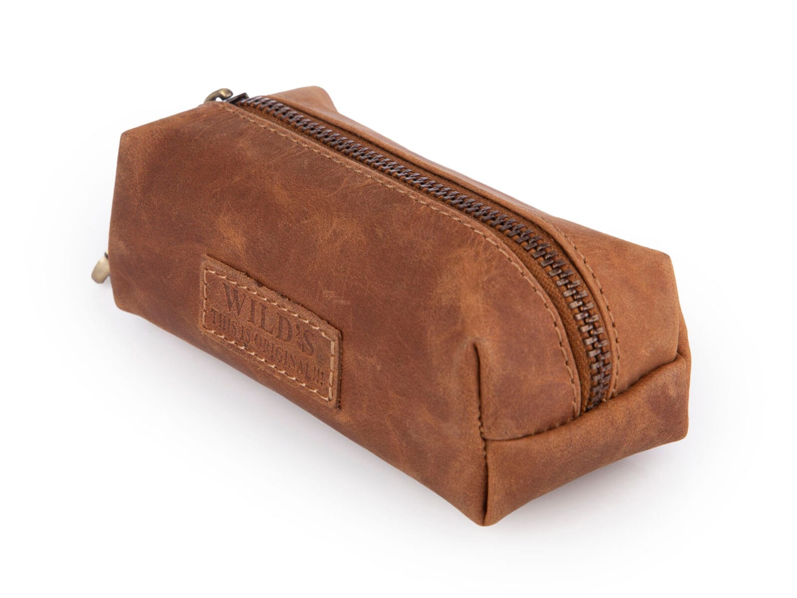Pojemne etui saszetka na klucze ze skóry naturalnej jasnobrązowe