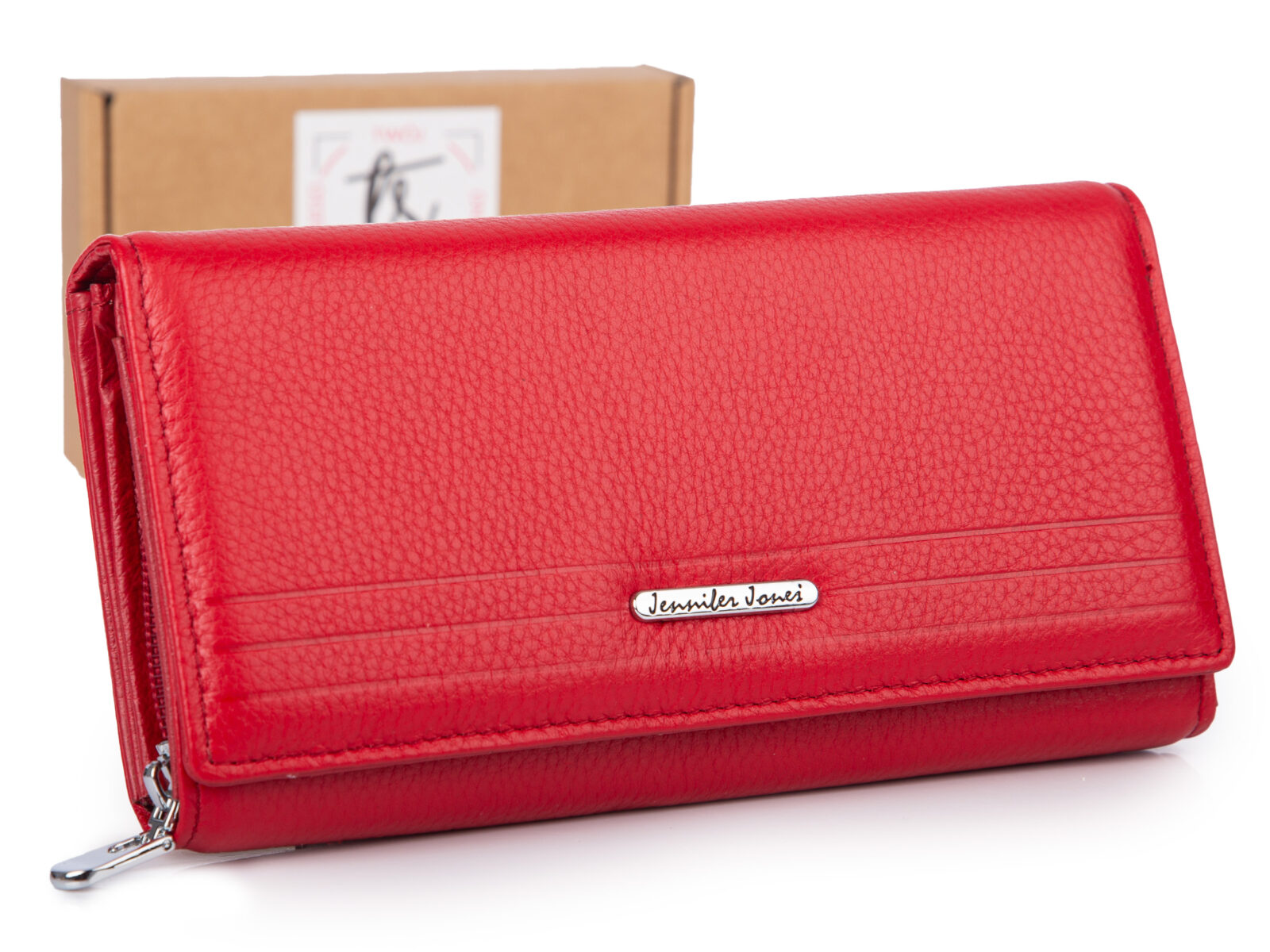 Mały portfel damski czerwony lakierowany gładki w piórka Jennifer Jones