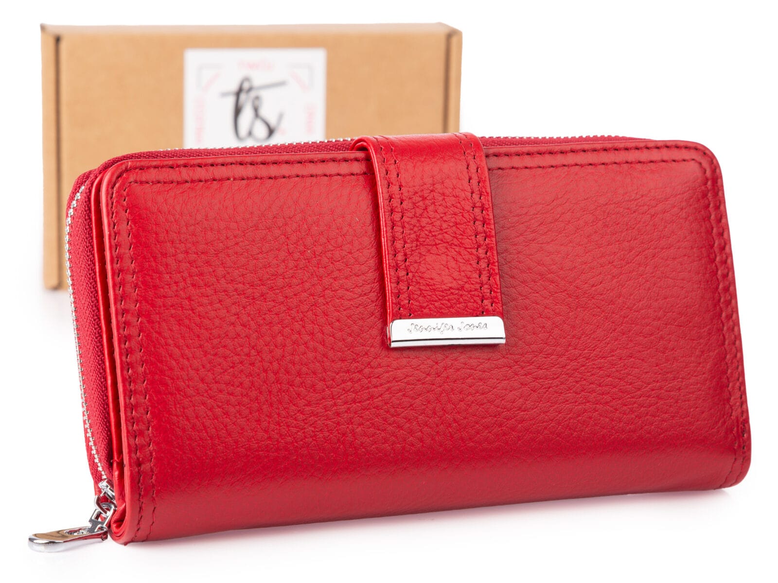 Portfel damski czerwony z miękkiej skóry naturalnej duży Jennifer Jones z RFID