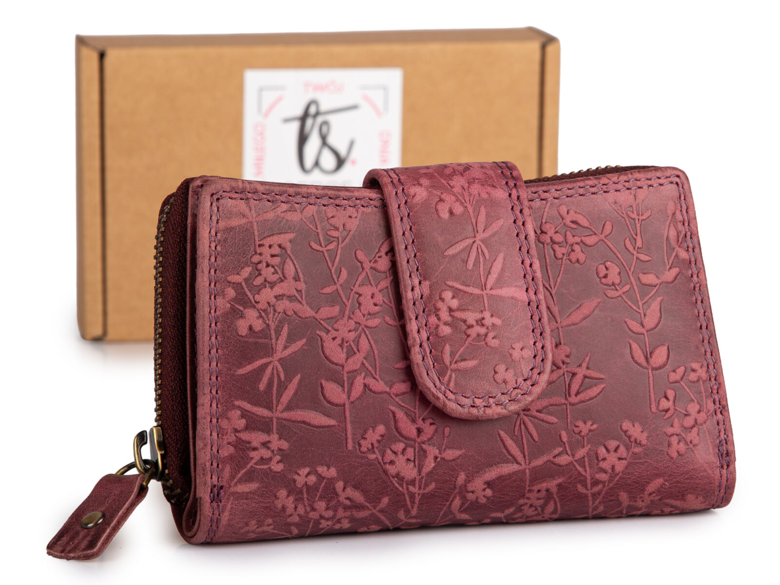 Mały bordowy portfel damski lakierowany Jennifer Jones