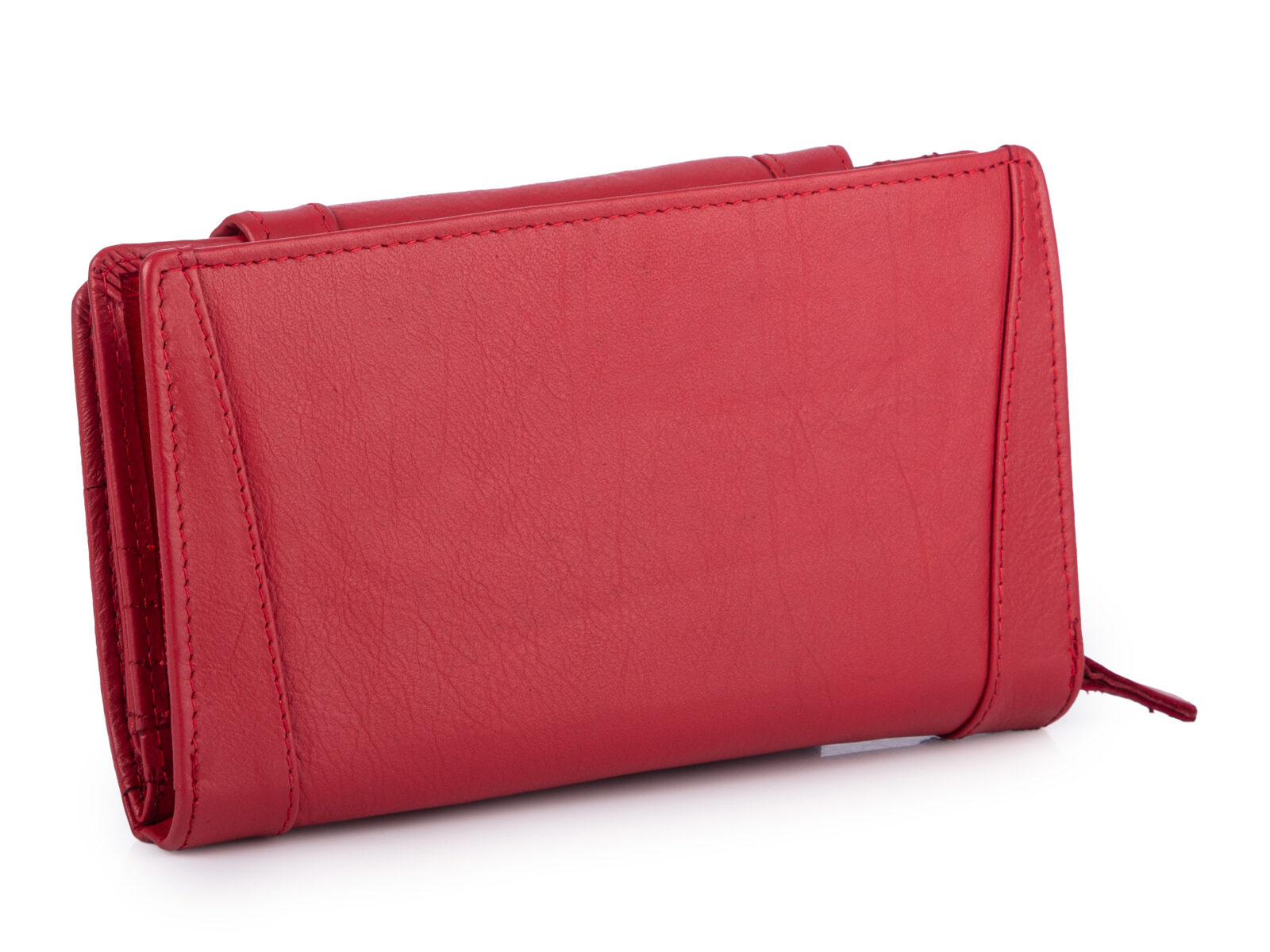 Średni portfel damski ze skóry naturalnej zapinany na bigiel czerwony