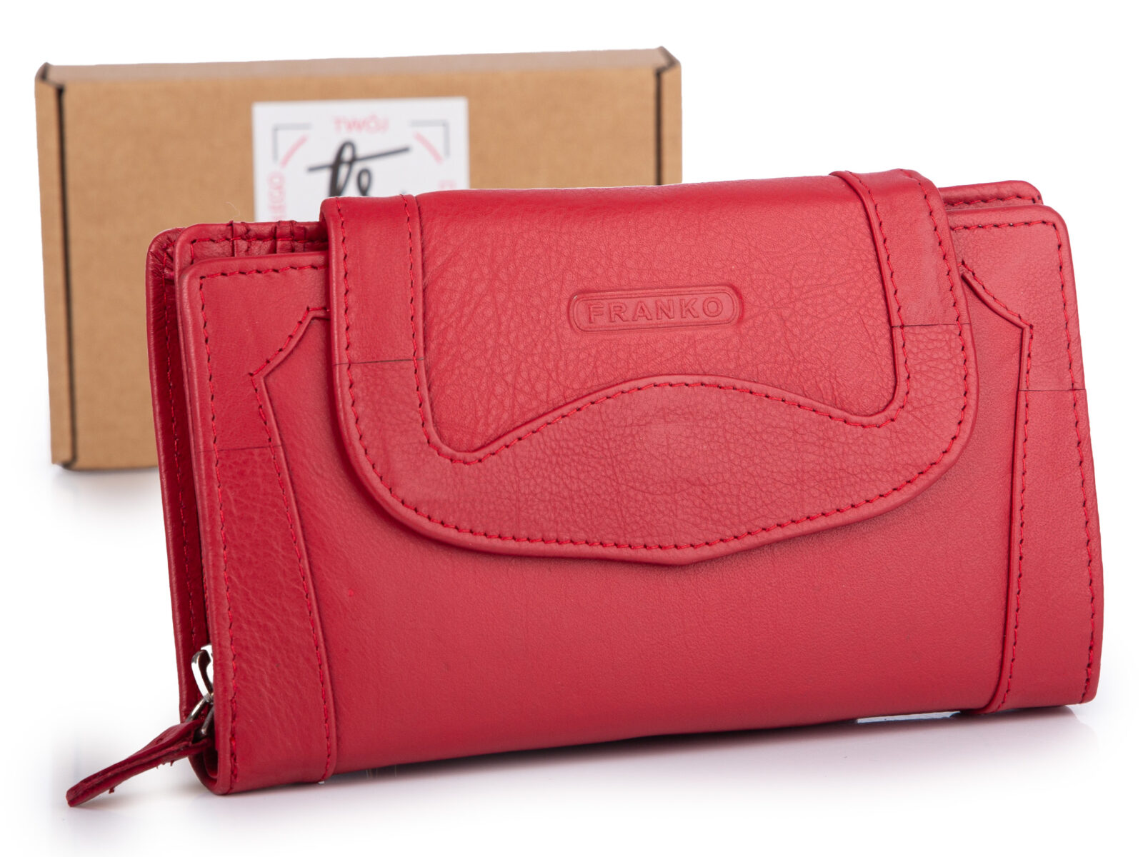 Duży, czerwony, portfel damski z miękkiej skóry naturalnej Franko