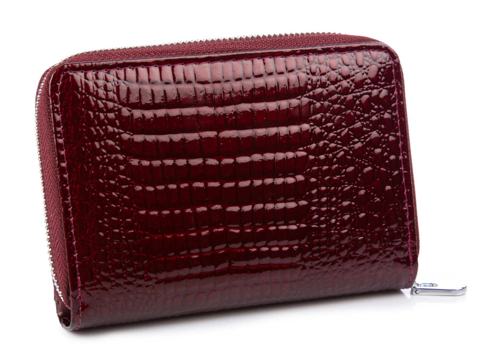 Duży burgundowy portfel damski z metalową "falą" z przodu RFID na zamek