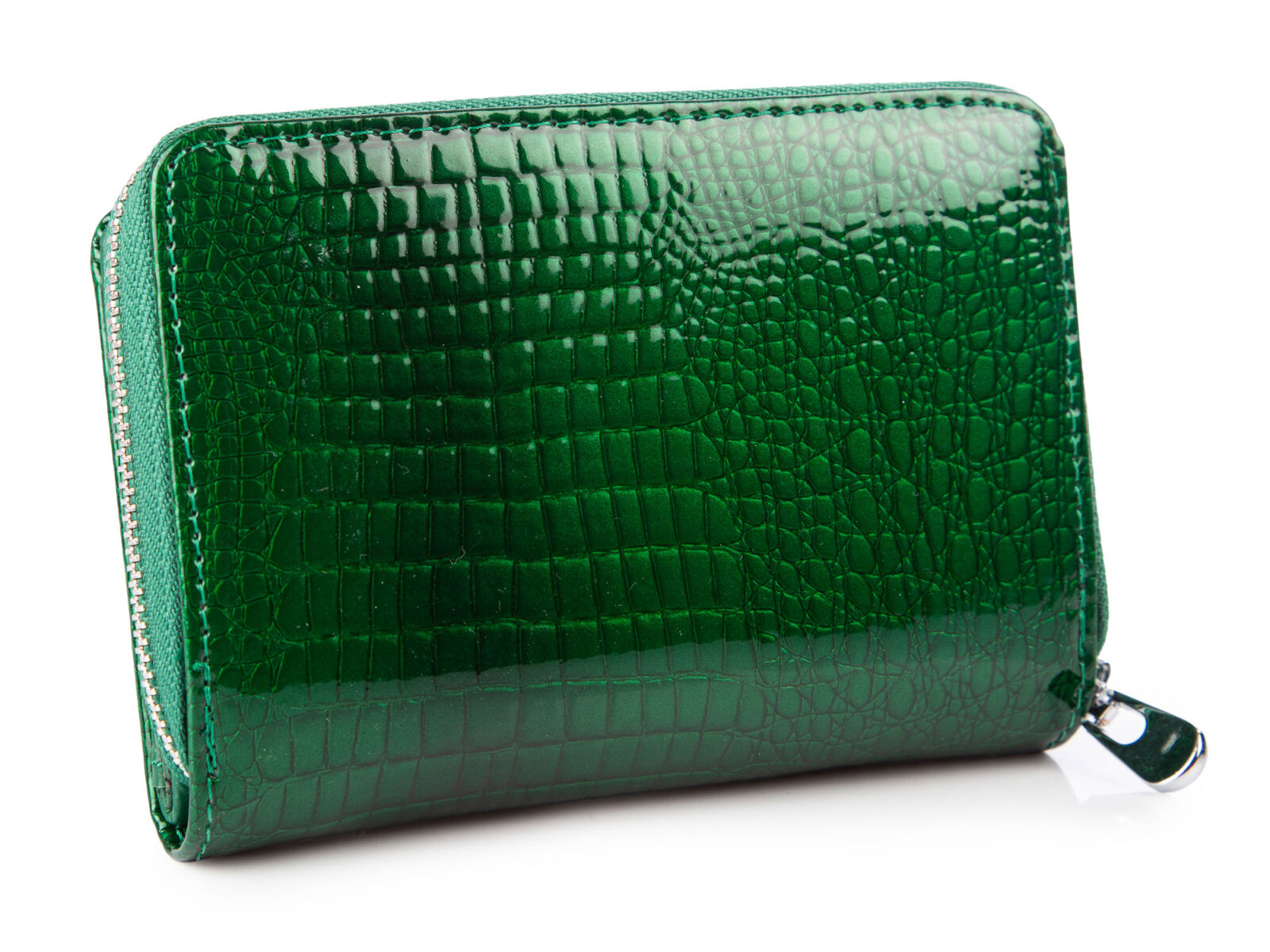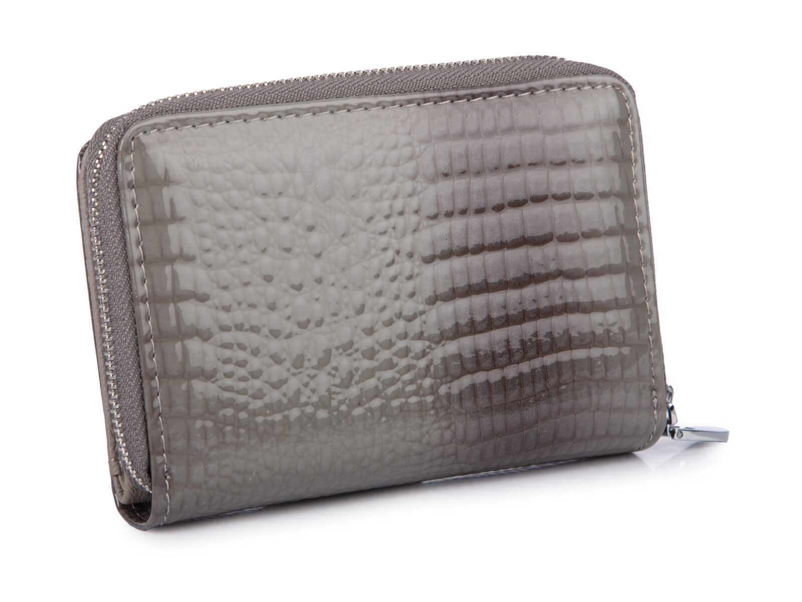 Czarny, średni portfel damski skórzany z wzorem imitującym skórę krokodyla