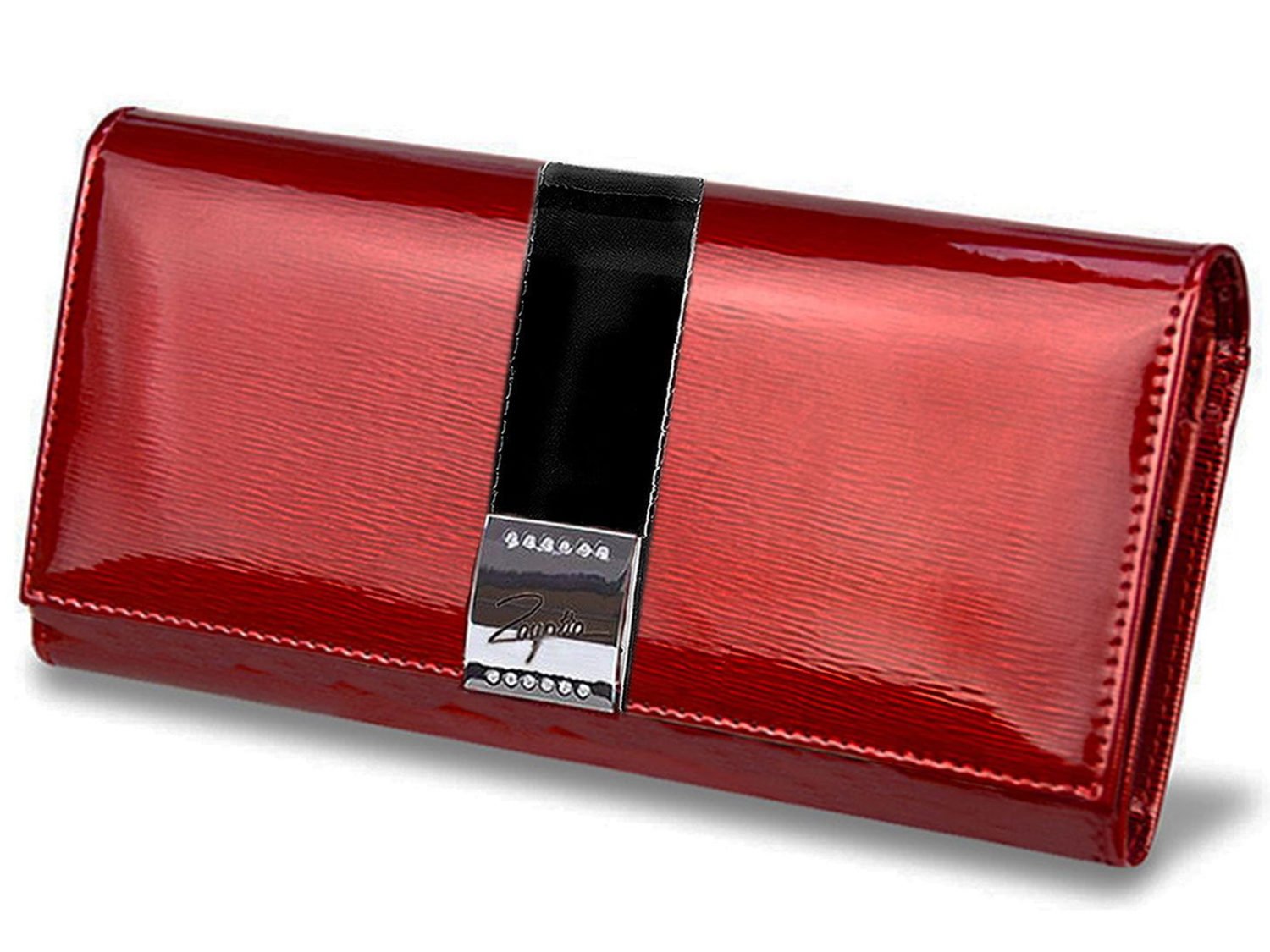 GREGORIO Portfel damski czerwony z czarnym lakierowany RFID