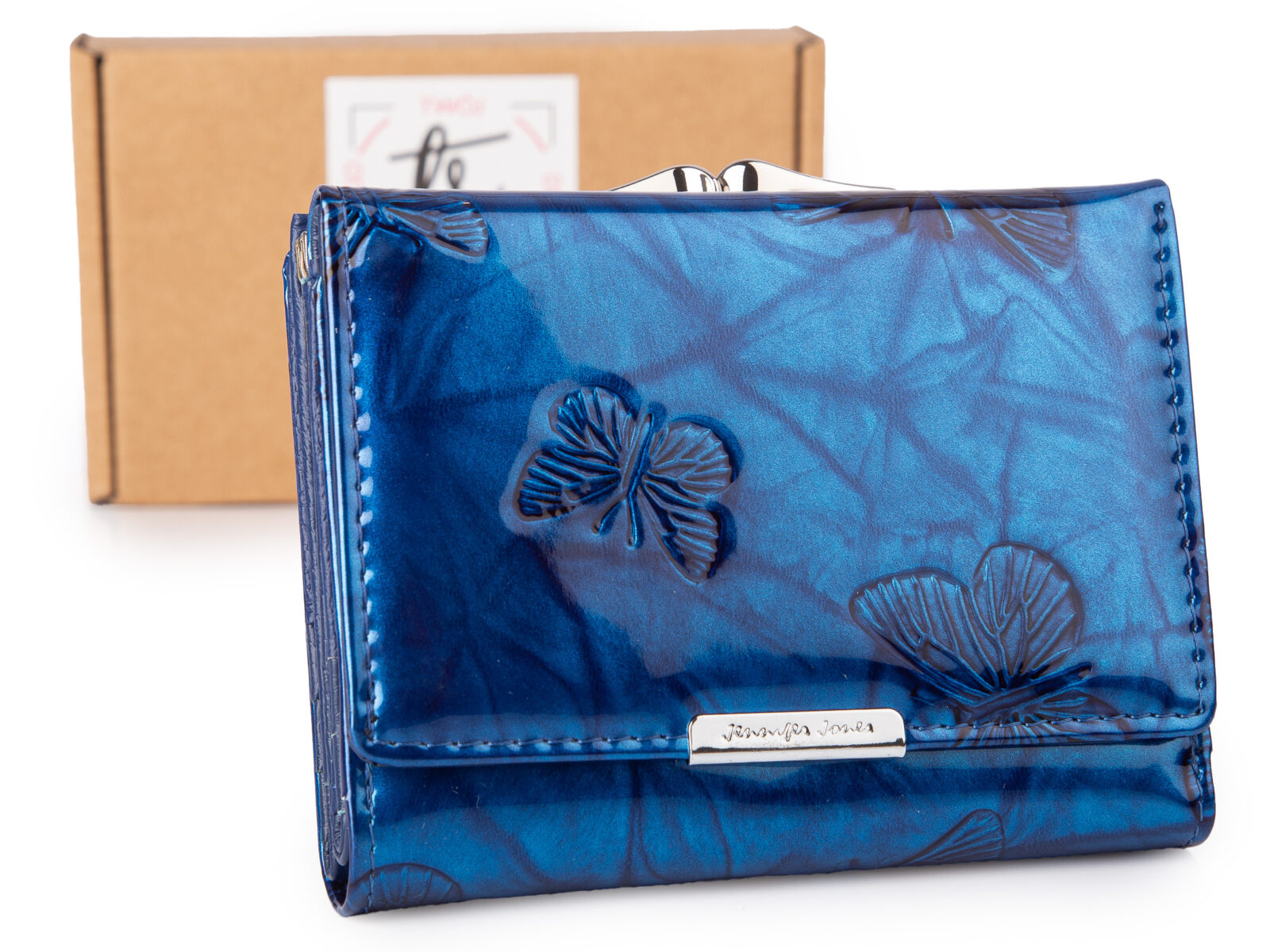 Czarny poziomy lakierowany portfel damski skórzany Jennifer Jones