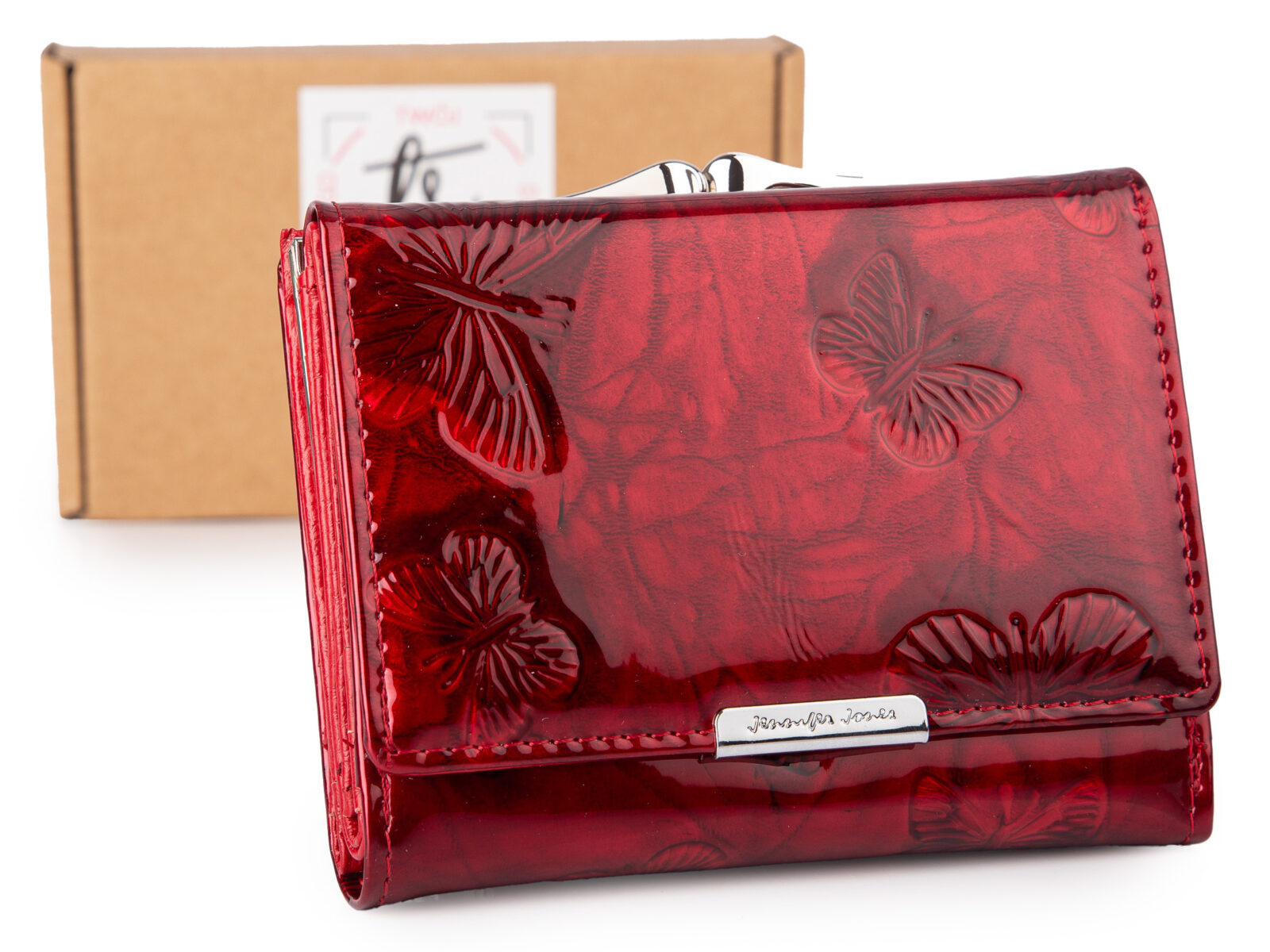 Damski portfel z czerwonej skóry lakierowanej Jennifer Jones