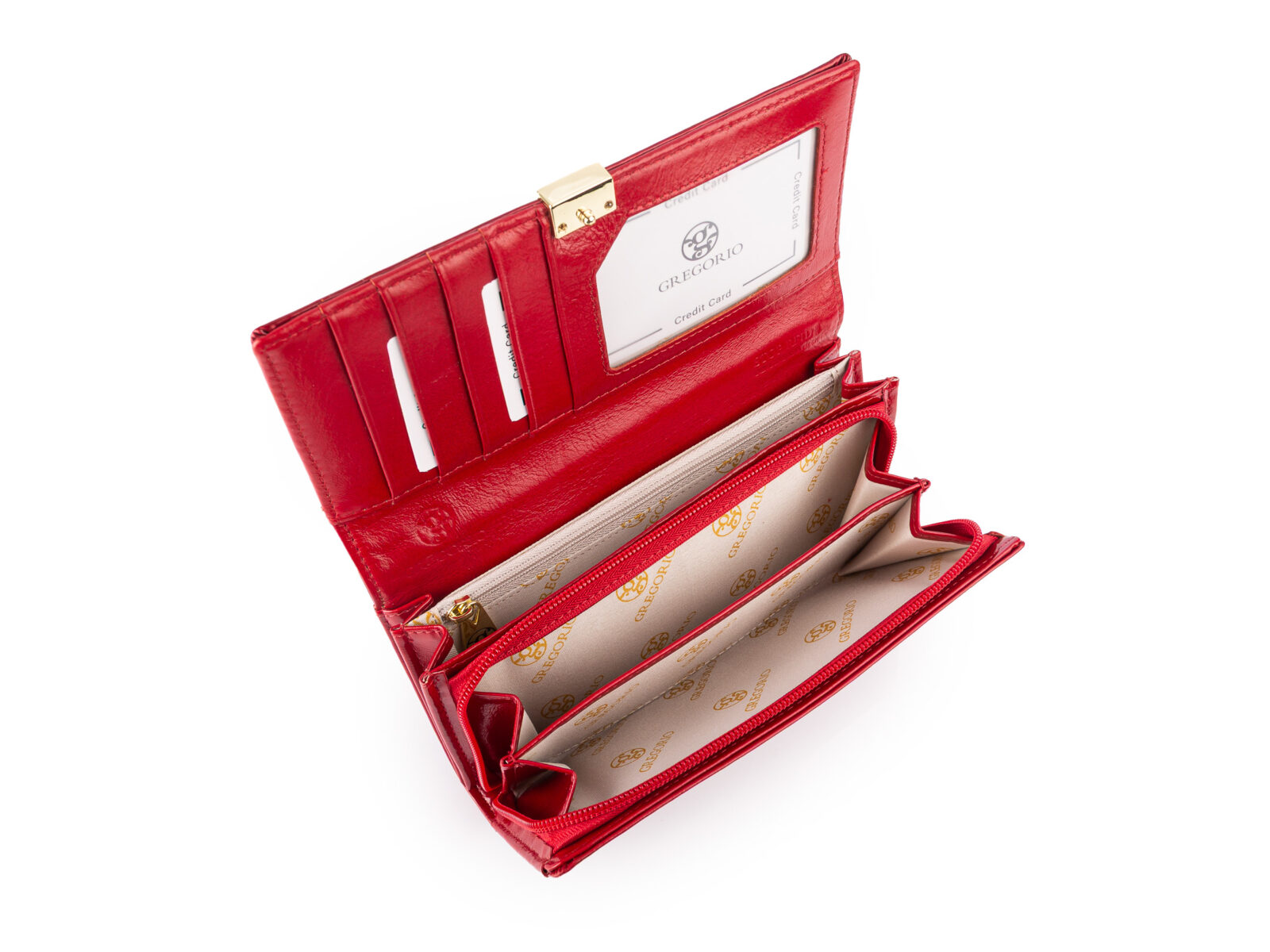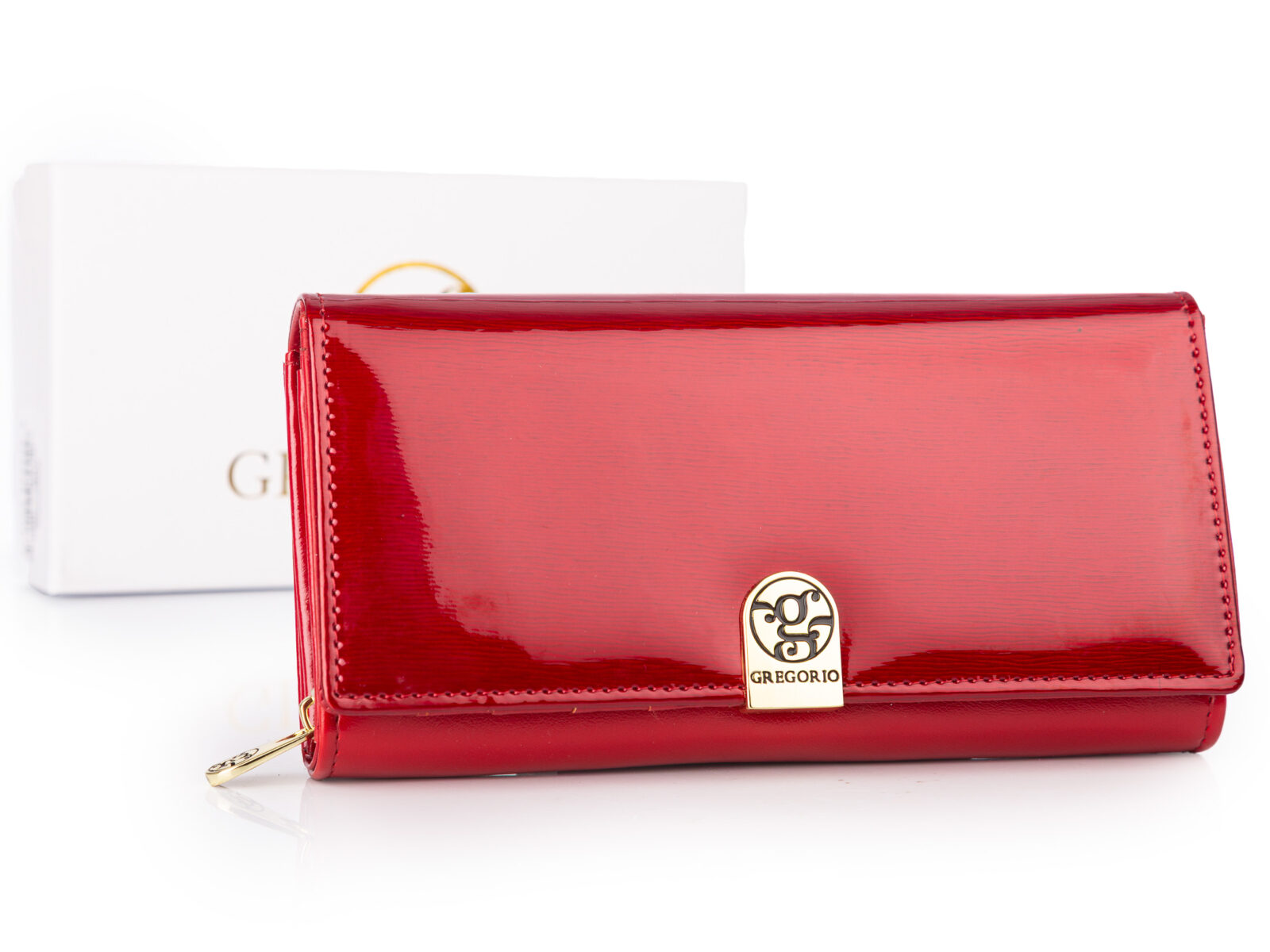 Duży, poziomy, lakierowany portfel damski w kolorze czerwonym Gregorio