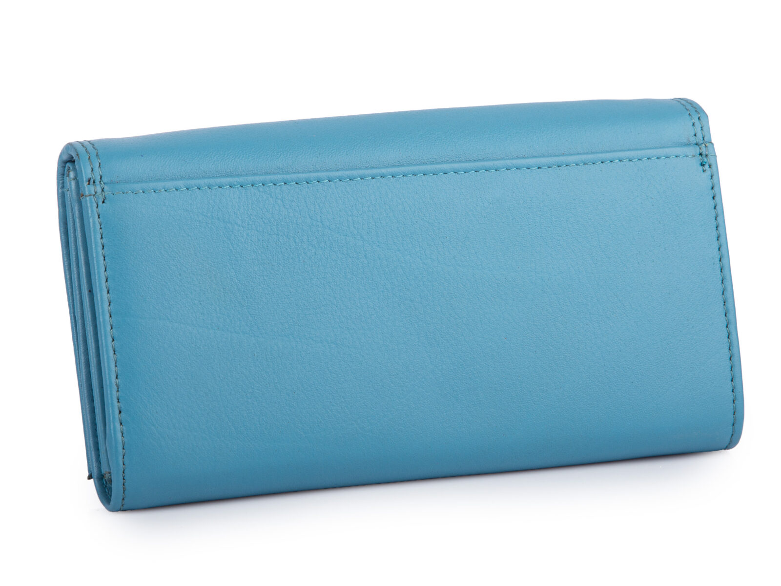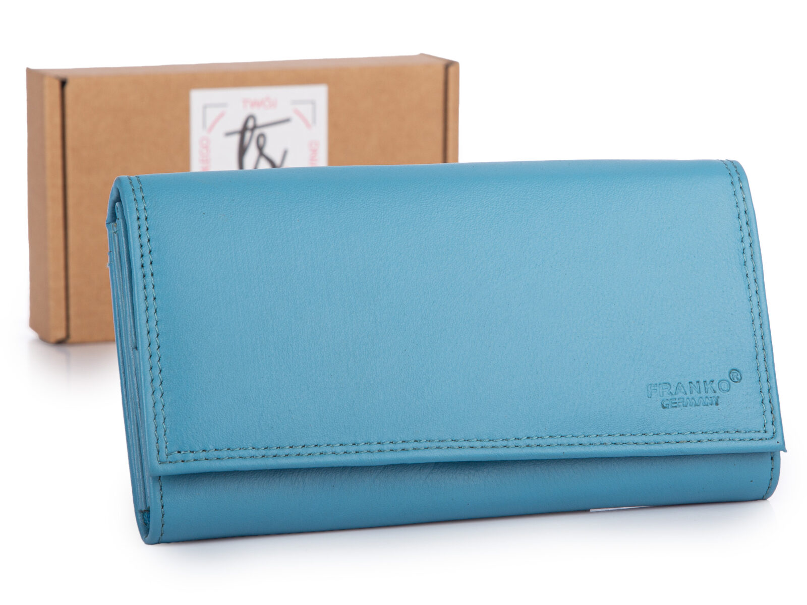 Niebieski, pojemny, skórzany portfel damski poziomy Franko
