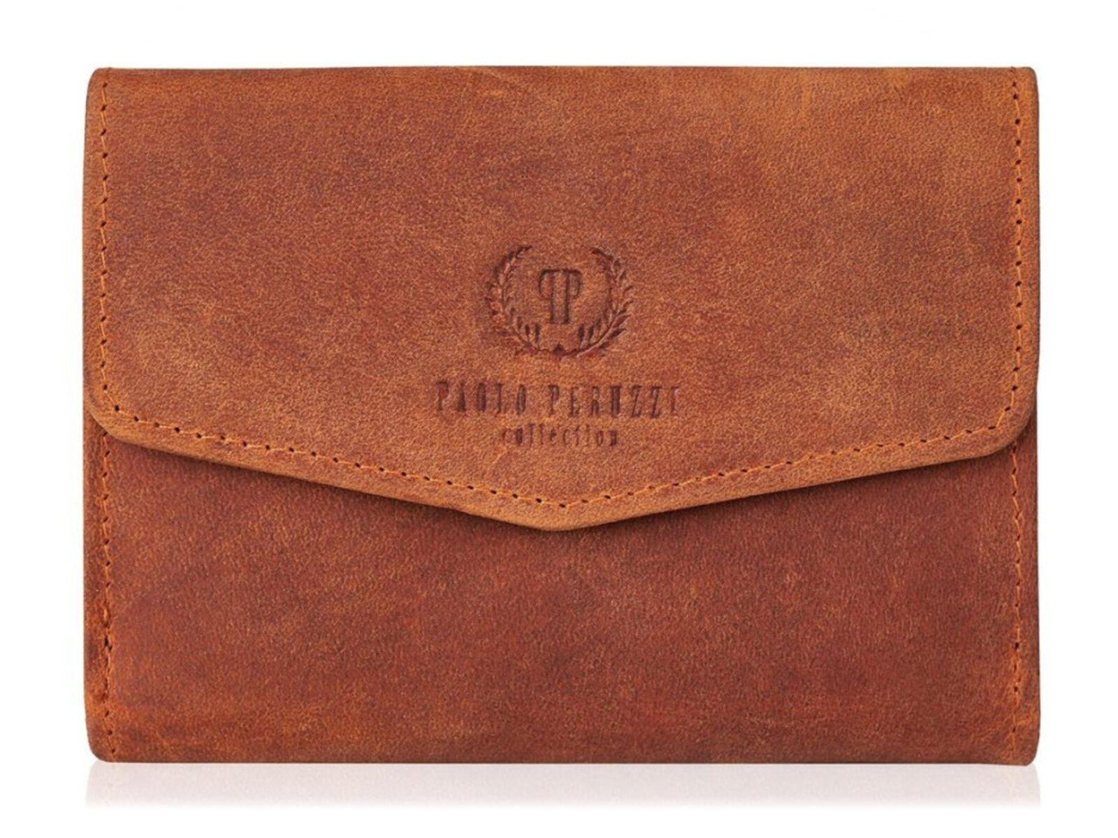 Średniej wielkości jasnobrązowy portfel damski z surowej skóry naturalnej w stylu vintage Paolo Peruzzi