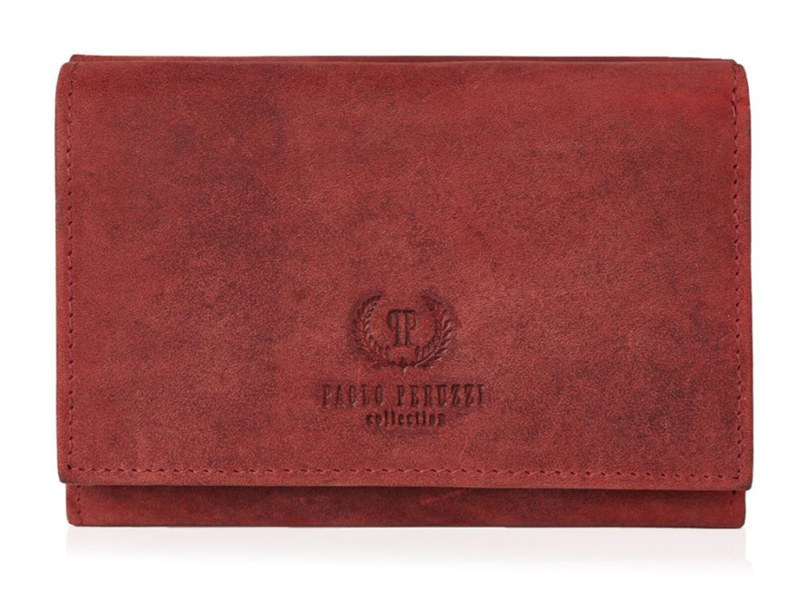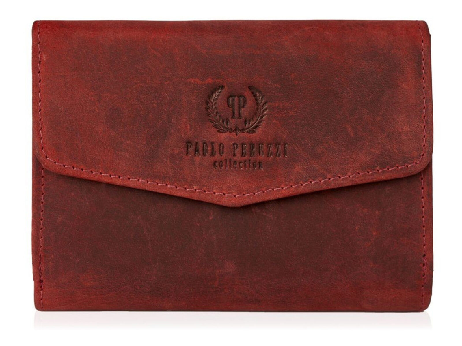 Średniej wielkości czerwony portfel damski z surowej skóry naturalnej w stylu vintage Paolo Peruzzi