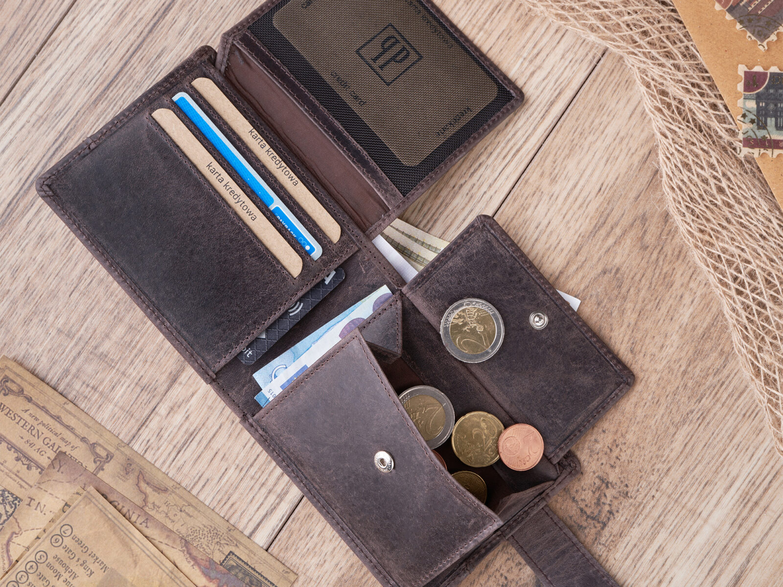 Mały portfel damski ciemnobrązowy skórzany w stylu vintage Paolo Peruzzi