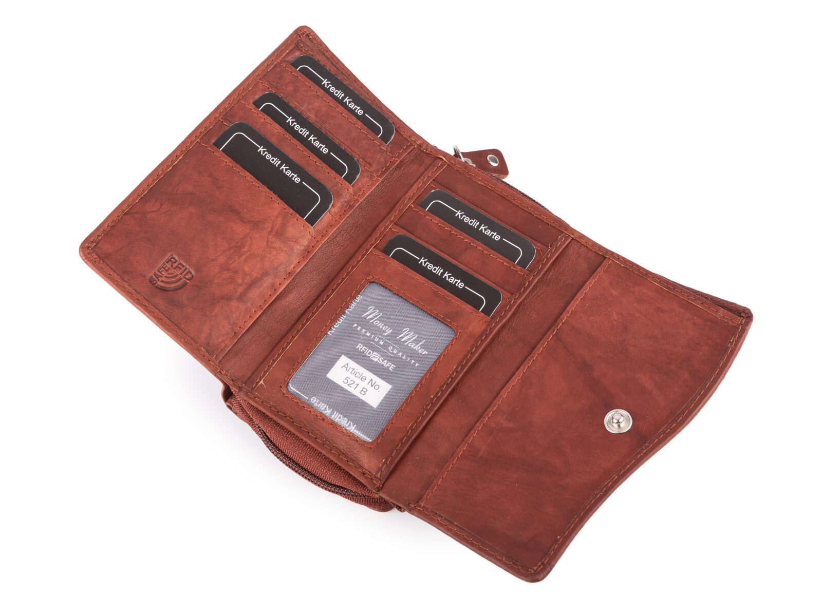 Portfel damski skórzany ciemnobrązowy z zabezpieczeniem rfid Money Maker