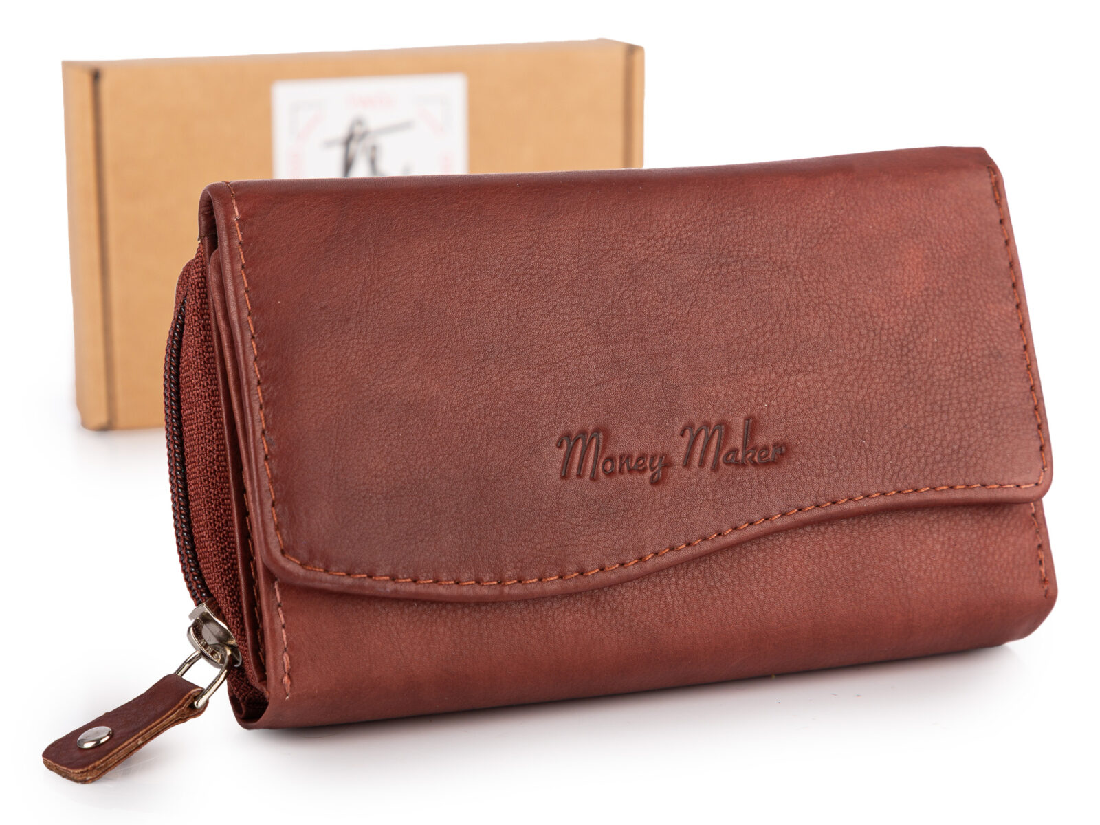 Portfel damski skórzany koniakowy brąz Money Maker